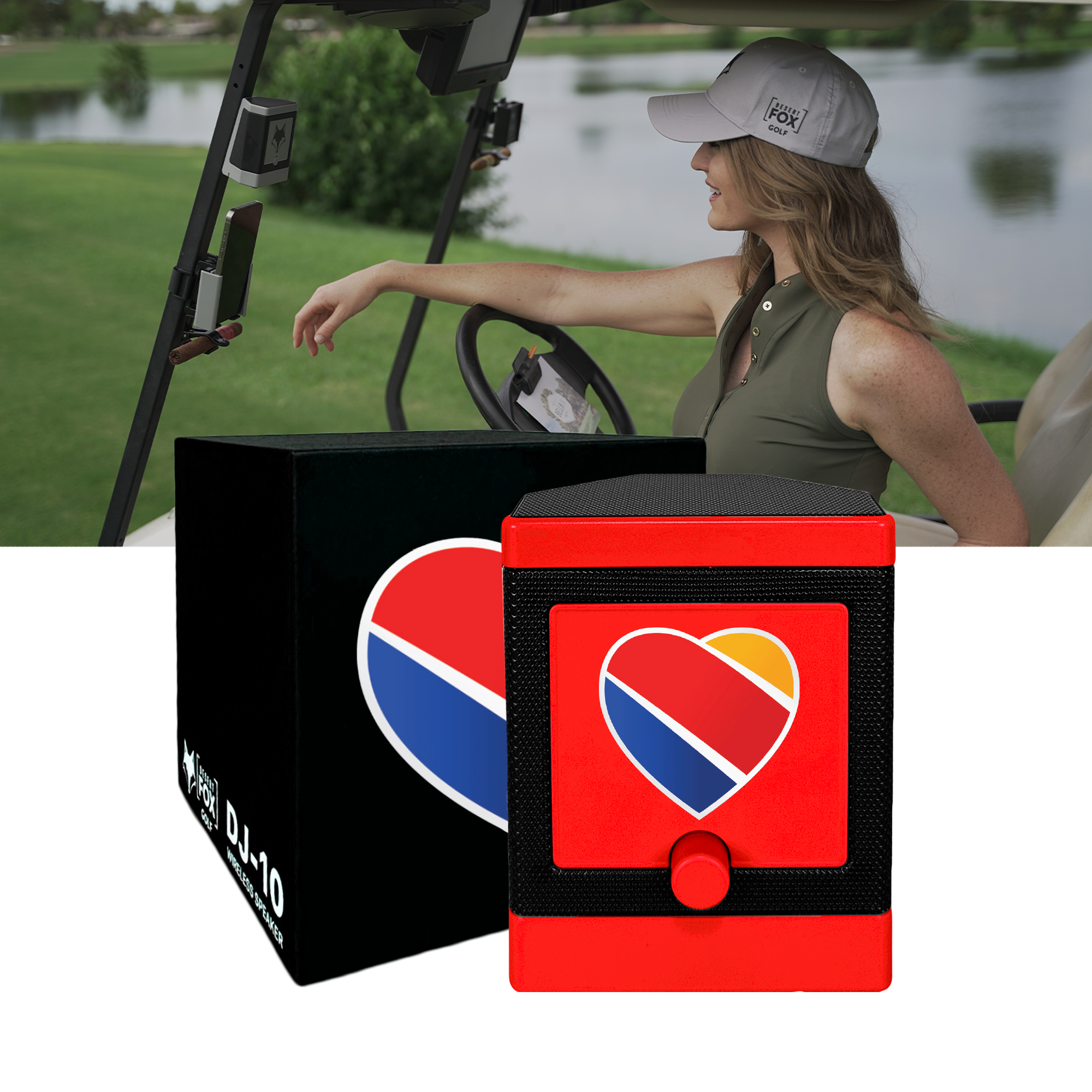 DJ-10 Box Front Angle Right Fox Head and Speaker Tight Overlap 1400x1200.png